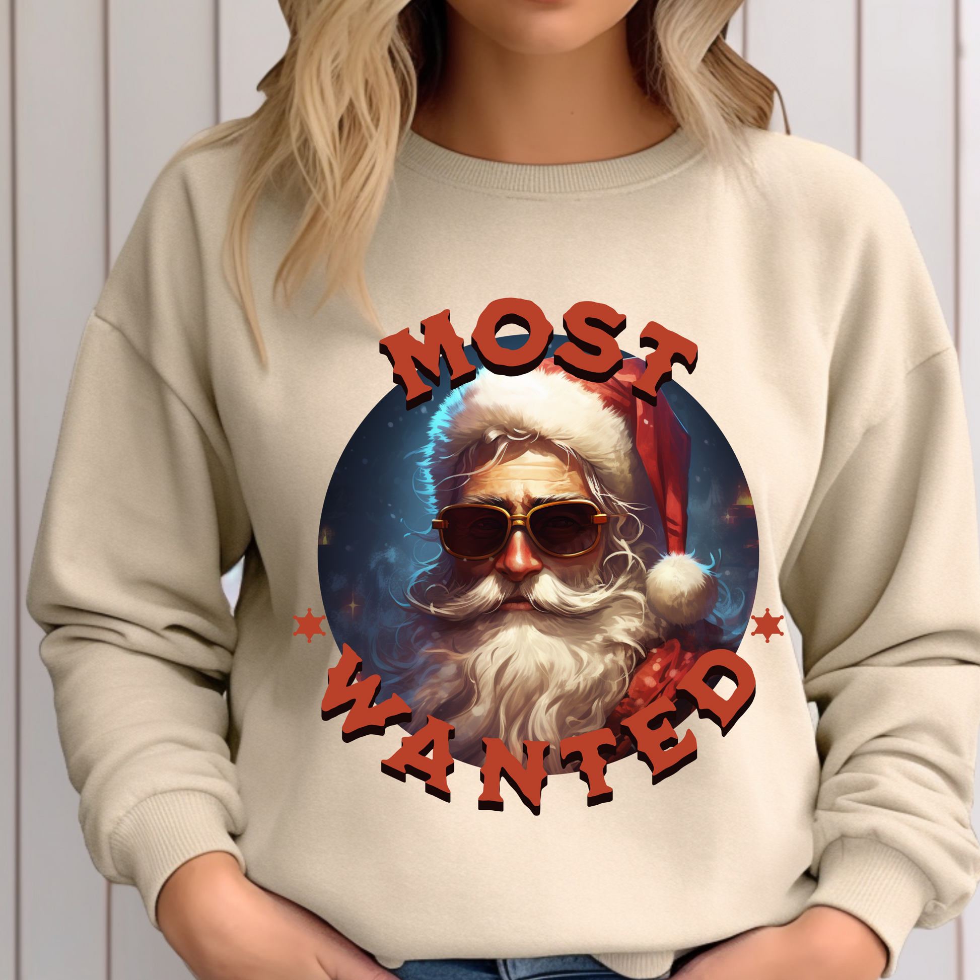 Fun shirt for kids and adults a like! Most Wanted Santa! Sublimation design! Great for shirts and other items!